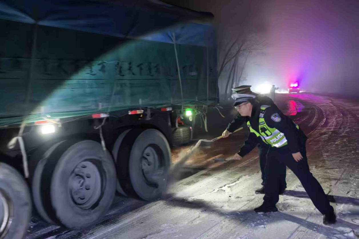 五大連池市公安局反恐與交巡特警大隊開展路面防滑處置 筑牢交通安全屏障