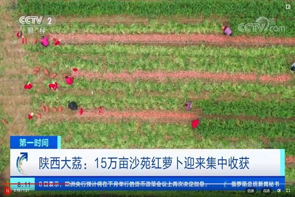 陜西大荔:15萬畝沙苑紅蘿卜迎來集中收獲
