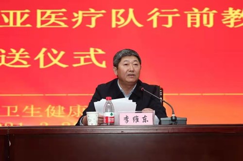 黑龍江省衛(wèi)生健康委黨組成員、副主任李維東作動員講話并為醫(yī)療隊授旗。他要求全體隊員深入貫徹新時代黨的建設(shè)總體工作要求,把“不忘初心、牢記使命”作為持續(xù)加強黨的建設(shè)的永恒課題和黨員干部的終身課題。務必高度重視疫情防控,做到人物并防、多病同防,疫情防控必須慎終如始,要傳遞好中國抗疫經(jīng)驗,落實好對口醫(yī)院合作機制,推進援助項目創(chuàng)新。并以身邊的抗疫英雄為榜樣,秉承援外醫(yī)療優(yōu)良傳統(tǒng)、弘揚偉大抗疫精神。