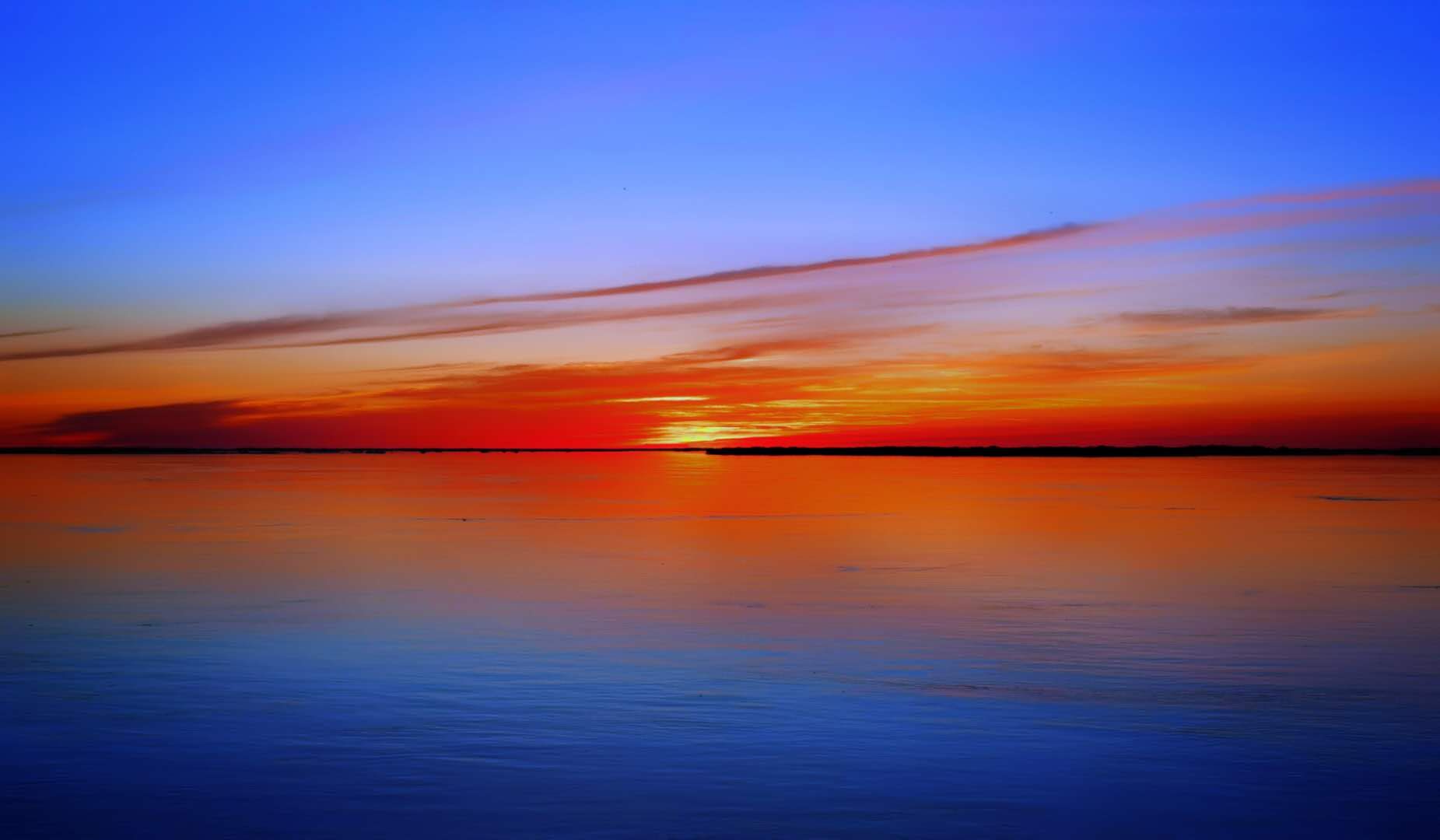 落日余暉的江面