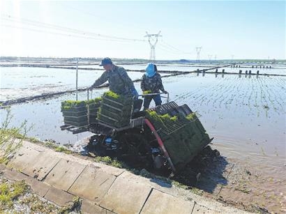 坤站村稻豐糧食種植農(nóng)民專業(yè)合作社理事長楊軍介紹,受氣溫影響,今年插秧比往年延遲一周左右,為了把時間搶回來,合作社社員起早貪黑,從早晨四點多就開始插秧。合作社今年種植水稻面積3000多畝,為抗低溫、保全苗、奪高產(chǎn),全部采用機(jī)械化插秧,一臺插秧機(jī)每天可插秧50畝。楊軍說,去年建設(shè)的水稻公園成為游客網(wǎng)紅打卡地,今年在稻田公園新設(shè)計一個慶祝建黨100周年和鄉(xiāng)村振興的彩繪圖案,助力鄉(xiāng)村旅游業(yè)發(fā)展。