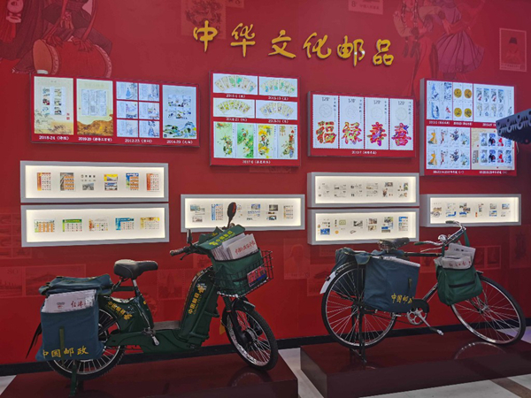 一進(jìn)門(mén)右手邊,是一個(gè)透明的郵政信筒,它來(lái)自2008年北京殘奧會(huì)閉幕式,現(xiàn)場(chǎng)有很多人通過(guò)它投遞出了《寄給未來(lái)的信》。左右兩側(cè)的墻上,懸掛著中華文化郵品,用郵票的形式展示傳統(tǒng)文化,重陽(yáng)節(jié)、梅蘭芳舞臺(tái)藝術(shù)、景德鎮(zhèn)瓷器等具有紀(jì)念意義的郵票都位列其中,這里是集郵愛(ài)好者的天堂。
