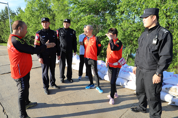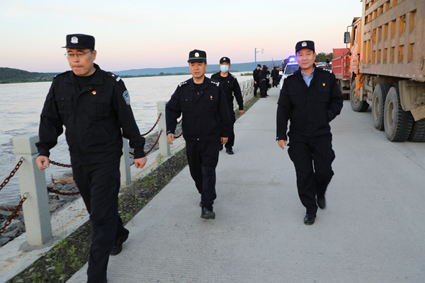 漠河市副市長、公安局黨委書記、局長姜明君,局黨委委員李永鳴、張華武分別帶領(lǐng)各突擊小分隊與北極鎮(zhèn)政府緊密對接,劃分責任片區(qū),定人定崗巡回查看黑龍江江堤水位、道路排水設(shè)施和人防工程等情況。突擊隊中,科級以上干部、部門負責同志近三分之一,黨員民警近五分之二,主動請纓沖在防洪防汛第一線,充分發(fā)揮模范帶頭作用。