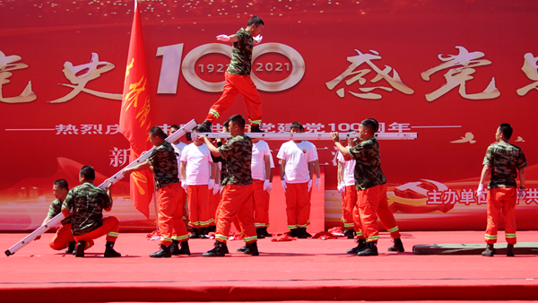 新林林業(yè)局黨委副書記、局長張鶴松為演出致辭。演出在森林消防二大隊(duì)隊(duì)員激昂的鼓聲中拉開了帷幕,本次文藝匯演共13個(gè)節(jié)目,通過歌舞、詩朗誦、快板、大合唱等形式,回顧黨的光輝歷程,謳歌黨的豐功偉績(jī)。