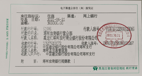 為更好地支持塔河縣應(yīng)對汛情,戰(zhàn)勝洪災, 6月21日,塔河農(nóng)商銀行在上級銀行的大力支持下,簡化手續(xù),特事特辦,第一時間向塔河縣人民政府捐贈救災款項30萬元,用于塔河縣抗洪救災工作,奉獻了農(nóng)商銀行廣大干部職工的一份愛心。
