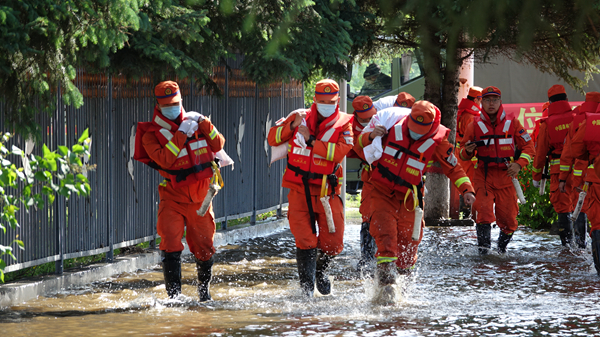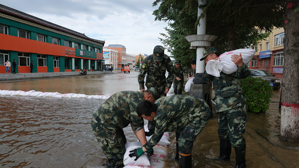 18日凌晨,記者在位于塔河鎮(zhèn)中央大街東端的塔河農(nóng)商銀行機關(guān)辦公樓前看到,漲勢很快的洪水正迅猛地漫過中央大街,向街邊的農(nóng)商銀行機關(guān)大樓、稅務(wù)局辦公樓和電視臺辦公樓等處涌來,而這幾個沿街單位地勢較低,很容易受到洪水的侵襲。為盡量控制洪水水勢,最大限度減少洪水造成的損失,塔河縣防指迅速調(diào)集人力物力,主要領(lǐng)導靠前指揮,廣大救援官兵奮勇爭先,在幾個臨街單位外圍用沙袋圍壩攔堵,并調(diào)動多臺高壓水泵抽水抗?jié)?,給幾個單位的救援提供了極大地助力,也為其自救創(chuàng)造了更多的時機。