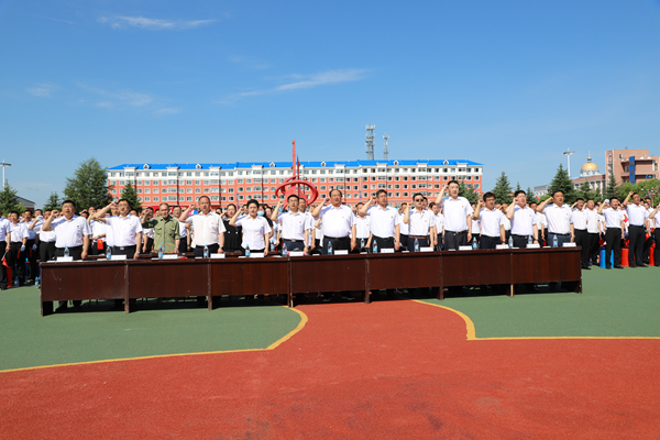 林業(yè)局黨委副書記呂光鑫為慶賀中國(guó)共產(chǎn)黨成立100周年致辭。匯演前,舉行了新黨員入黨宣誓及重溫入黨誓詞活動(dòng)。只見鮮紅的黨旗在4名護(hù)旗手的佑護(hù)下走到廊臺(tái)中央,7名新黨員精神飽滿地走上臺(tái),林業(yè)局領(lǐng)導(dǎo)胡守慶、韓鳳泉、呂光鑫、高樹源、劉麗、雄偉、王飛走上臺(tái),為新黨員佩戴黨徽。在場(chǎng)黨員全部起立,面向黨旗莊嚴(yán)宣誓,“我志愿加入中國(guó)共產(chǎn)黨……”誓詞的聲音響徹廣場(chǎng)上空。