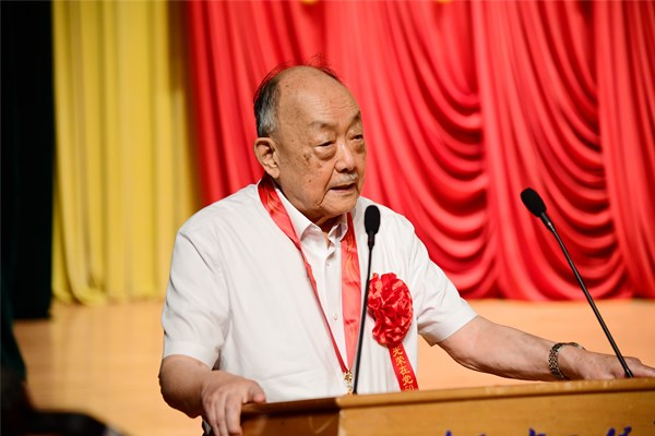 大會(huì)為“光榮在黨50年”的老黨員代表頒發(fā)紀(jì)念章,楊士莪院士作為黨齡56年的老黨員,發(fā)表了獲獎(jiǎng)感言,他說,“我們這批在黨的關(guān)懷和培養(yǎng)教育下成長起來的一代,在黨的百年生日的時(shí)候,說實(shí)話心里千言萬語不知從何說起,要不然我就唱兩句現(xiàn)在電視上經(jīng)常聽到的歌曲。”楊院士深情唱響《唱支山歌給黨聽》,他說:“我的聲音雖然不好聽,但是這首歌能夠表達(dá)我的心意。唱支山歌給黨聽,我把黨來比母親……”。楊士莪院士的歌聲讓在場(chǎng)師生非常意外,這首沒有經(jīng)過彩排的歌曲,卻因真情實(shí)感走進(jìn)了師生們的心里,在他的帶動(dòng)下,在場(chǎng)師生也情不自禁地鼓掌打拍跟唱起《唱支山歌給黨聽》,“母親只生了我的身,黨的光輝照我心。”