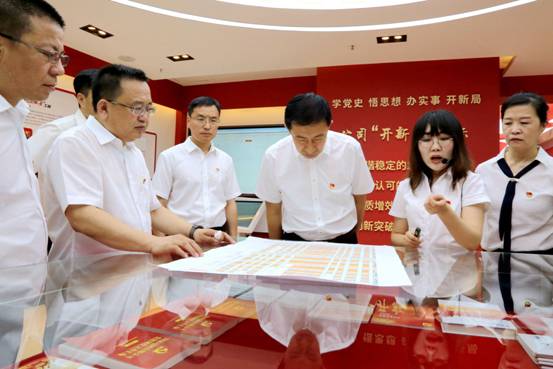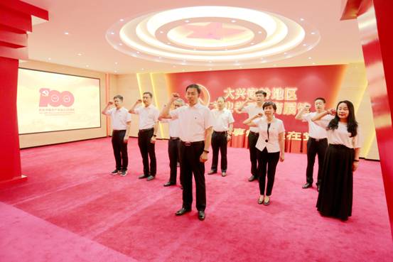 在地區(qū)黨史學習教育展館,面對鮮紅的黨旗,由區(qū)委書記王顯志領誓,區(qū)委理論學習中心組成員集體宣誓,重溫入黨誓詞,砥礪前進初心,勇擔職責使命。