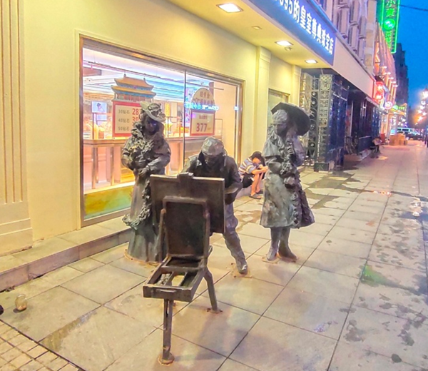 哈爾濱市中央大街是聞名全國的網紅打卡地,輔街上的雕像也為這座城市增添了幾分神韻。祝東 攝