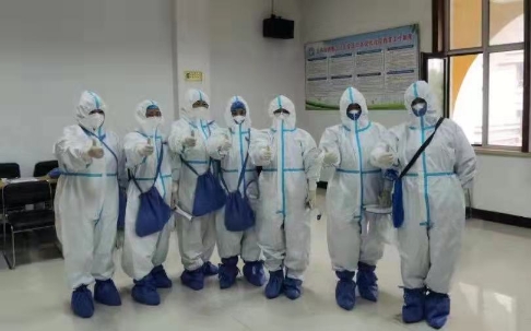 自2020年1月感染內(nèi)科全體醫(yī)護(hù)承擔(dān)起發(fā)熱門診此項艱巨任務(wù),一樓設(shè)立為發(fā)熱門診留觀室,二樓為核酸未出結(jié)果者緩沖病房,三樓、四樓為核酸陰性但尚未解除隔離的留觀病房。此次根據(jù)疫情防控要求,在原本樓層多,醫(yī)護(hù)工作“戰(zhàn)線”長的情況下,還特別設(shè)立了“巴彥”疫區(qū)專屬樓層。來自風(fēng)險區(qū)患者就診時,在隔離區(qū)的一名醫(yī)生和一名護(hù)士每個班次經(jīng)常工作6-8小時,樓上樓下的反復(fù)奔走,裹著密不透氣的防護(hù)服,汗水濕透衣背。長時間的不能喝水吃飯如廁,挑戰(zhàn)人體生理忍耐極限,但從未有人叫苦委屈。白班的同志在結(jié)束日間工作后,為了解決科室人員少,且工作量大的情況,主動留下加班到很晚,而第二天還要支援社區(qū)全員核酸采集任務(wù)。