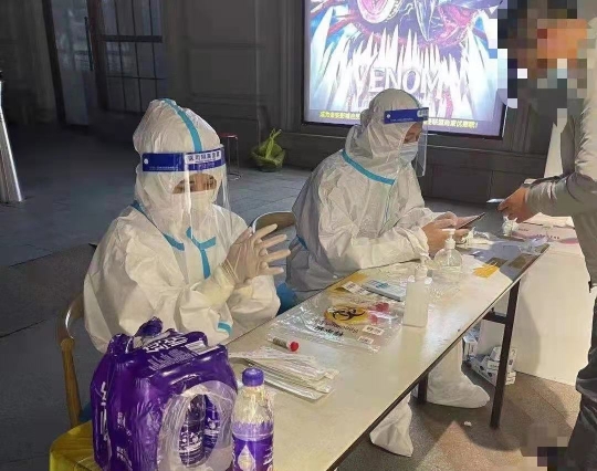 在做好發(fā)熱門診本職工作的同時,護(hù)理團(tuán)隊還全力支援社區(qū)全員采集核酸任務(wù)。有的同志在忙碌了一夜夜班后,連家都沒回,又立刻投身到核酸采樣任務(wù)中。時間緊任務(wù)重,經(jīng)常早上4、5點鐘就要出發(fā)集合去采樣地點,直到晚10點左右才結(jié)束工作。采樣地點多在室外,氣溫低,更是放棄了吃飯休息的時間,爭分奪秒地為一個又一個居民采樣。長達(dá)十幾個小時的高壓工作,導(dǎo)致肩頸、手腕損傷,但就算這樣,也從未有人下“戰(zhàn)場”。