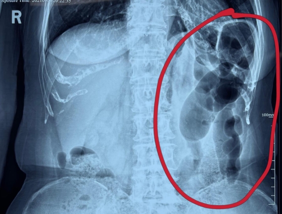 據(jù)省醫(yī)院消化病院消化二科姜子曄醫(yī)生介紹,韓大娘今年已經(jīng)73歲,家住哈爾濱市,一周前開始腹脹腹痛,有較為明顯的左側腹部疼痛,疼痛劇烈時會出現(xiàn)左側腹部鼓包情況,排氣排便后有所好轉。韓大娘家人見狀將其送到了黑龍江省醫(yī)院,門診檢查腹部平片提示為左側腹部積氣,口服全消化動力藥及通便治療后腹痛腹脹有所緩解,入院前再次突發(fā)左側腹痛加重伴有明顯腹脹,急診隨后以“腹痛腹脹原因待查”將韓大娘收入到消化病院消化二科。