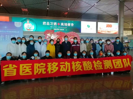 27日,我省黑河市愛輝區(qū)發(fā)現(xiàn)1例本土新冠肺炎陽性感染者。當天上午,黑龍江省醫(yī)院接到上級命令,需要立即派遣一支核酸檢測醫(yī)療隊支援黑河市抗“疫”工作,“疫情”就是命令,醫(yī)院黨委高度重視,黨委書記劉宏石親自指揮部署,克服醫(yī)院相關(guān)人員極度匱乏等困難(省醫(yī)院支援巴彥核酸檢測醫(yī)療隊一行40余人剛剛結(jié)束任務返回哈爾濱,正在隔離中),從現(xiàn)有人員中第一時間集結(jié)了涵蓋12名檢驗人員、12名護理人員及后勤保障人員共計30余人的支援黑河核酸檢測醫(yī)療隊,搭乘12:35分起飛的MU5613次航班奔赴黑河,成為第一支抵達黑河的省級醫(yī)療隊。