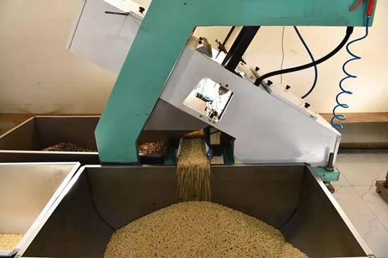 圖為新林林業(yè)局塔源林場(chǎng)堰松籽加工,進(jìn)入色選階段,此工序主要用于籽仁品質(zhì)等級(jí)分類(董淑玲/攝)