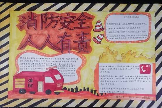 本次活動(dòng),同學(xué)們認(rèn)真搜集消防安全相關(guān)資料,精心設(shè)計(jì)版面,生動(dòng)活潑的內(nèi)容,色彩豐富、圖文并茂、書(shū)寫(xiě)美觀(guān),給人賞心悅目的感覺(jué)。