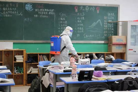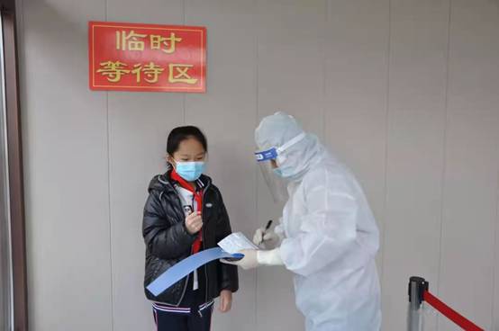 本次應急演練設定了“入校時、上課中、就餐中、隔離、轉運、心理安撫”等六個場景演練。在某一天,在某一校園內,某個學生出現發(fā)燒,身體困乏的狀況下,該校迅速按照教育局規(guī)定的應急流程,將該生帶到臨時等待區(qū)等待校醫(yī)現場診斷,校醫(yī)在3分鐘內迅速帶著醫(yī)療用品及防護服趕到現場。通過現場模擬診斷,初步懷疑該生為疑似感染新冠肺炎。在初步確認后,立即按照規(guī)定流程將情況匯報給校長,并對現場接觸者范圍進行排查。校長緊急聯系上級管理部門,組織轉運、心理安撫,開展現場消殺等活動。