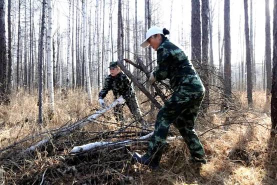 在撫育作業(yè)現(xiàn)地,寒冷的風(fēng)吹拂著干部職工的面龐,腳下過(guò)膝高的雜草直往鞋里鉆,一不小心就會(huì)踩進(jìn)冰冷的積水中。雖然工作環(huán)境較為艱苦,可沒(méi)有一個(gè)人掉隊(duì)退出,大家沒(méi)有牢騷,沒(méi)有埋怨,認(rèn)真撿拾著被壓木、腐朽木、枯死木、站桿、藤條及老舊伐根等影響中幼林生長(zhǎng)的木材。雖然機(jī)關(guān)干部職工大多數(shù)人以前都沒(méi)有從事過(guò)森林撫育工作,但經(jīng)過(guò)前期培訓(xùn)和現(xiàn)地實(shí)踐,大家對(duì)撫育技術(shù)操作要領(lǐng)很快掌握嫻熟,一字排開有序地清林歸堆,彼此間默契呼應(yīng),不一會(huì)現(xiàn)地就出現(xiàn)了橫山碼放整齊的枝丫堆。