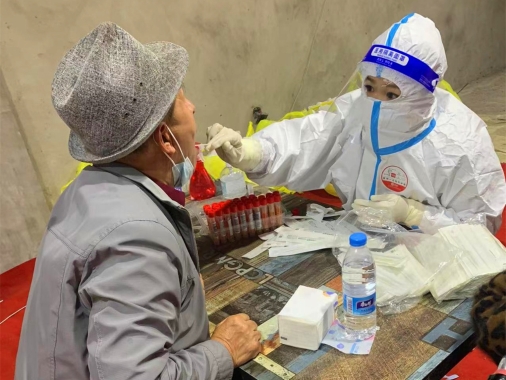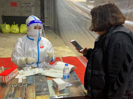 10月30日下午17時(shí),畢贏接到單位領(lǐng)導(dǎo)的通知,準(zhǔn)備好支援社區(qū)核酸采集,有可能今晚22點(diǎn)開始,有可能明早8點(diǎn)開始。就這樣,畢贏趕緊通知親戚朋友婚禮暫時(shí)取消,馬上要去社區(qū)支援。10月31日早8點(diǎn),由省醫(yī)院吳丹紅護(hù)士長(zhǎng)帶隊(duì),畢贏一行40名護(hù)士下沉到了新香坊鎮(zhèn)社區(qū)為那里的居民進(jìn)行核酸采集支援。就這樣,婚紗面前畢贏毅然決然地選擇了防護(hù)服,和她的戰(zhàn)友們并肩奔赴社區(qū)支援核酸采集,因?yàn)樗酪咔檫^后的婚禮才會(huì)更有意義。