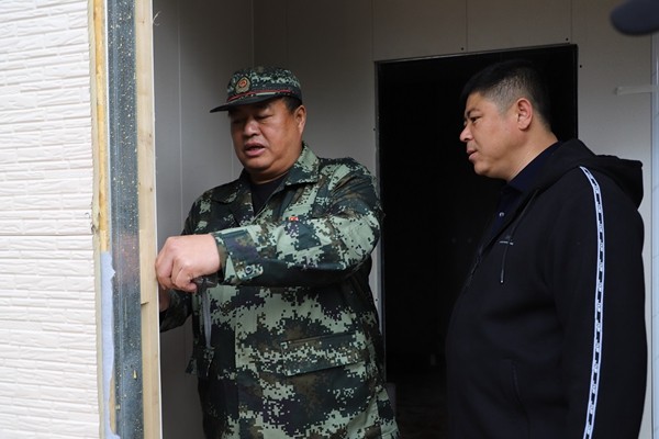 阿木爾林業(yè)局黨委書(shū)記胡守慶(左)測(cè)量在興安林場(chǎng)新建精品民宿窗口尺