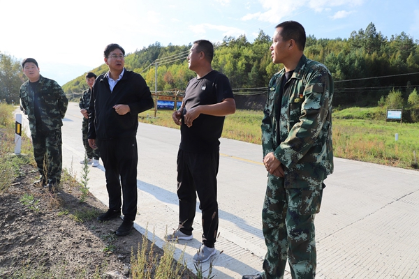 阿木爾林業(yè)局黨委副書(shū)記、局長(zhǎng)韓鳳泉(右三)深入到龍河林場(chǎng),檢查指導(dǎo)旅游產(chǎn)業(yè)工作(王力 攝)