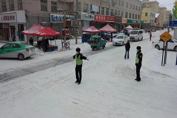 為了緩解降雪帶來的交通壓力,呼瑪縣公安交警大隊對縣內(nèi)各條主干道及車輛密集路口和各中小學校門前,分別加派了警力,上路執(zhí)勤,指揮交通,全力保障居民安全出行。