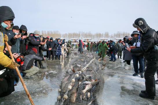 另外,杜爾伯特連環(huán)湖水產(chǎn)資源豐富,水產(chǎn)養(yǎng)殖業(yè)水域面積56萬(wàn)多畝,湖內(nèi)盛產(chǎn)40種淡水魚類,尤以鯉魚、草魚、鰱魚、胖頭魚、鯽魚、黑魚等為多,年捕魚千余噸,冬網(wǎng)捕魚更是傳統(tǒng)習(xí)俗。連環(huán)湖溫泉景區(qū)冬季每天上午免費(fèi)開展民俗冬捕活動(dòng),購(gòu)魚享受8折優(yōu)惠,還可以參與抽獎(jiǎng)活動(dòng)。