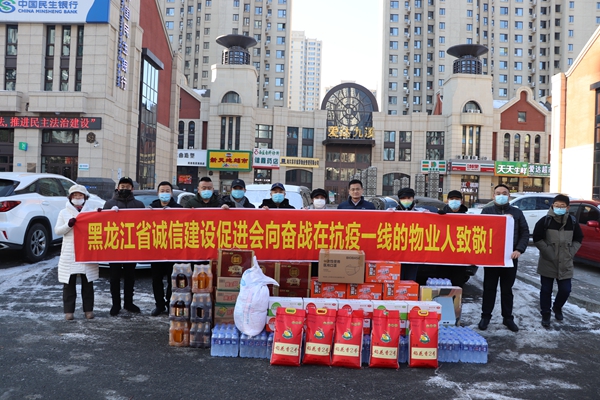 12月13日上午,黑龍江省誠信建設促進會會長張波、黨支部書記張弘、省誠促會副會長孫瑞霞、認證服務專委會主任于海波、物業(yè)誠信專委會副主任陳巍、哈爾濱南十八食品有限公司總經理胡秋荔、齊齊哈爾市鶴潤食品原料有限公司總經理王影、“誠信龍江”運營中心副主任宋巍、秘書處工作人員、黨員及入黨積極分子一行10余人,深入疫情防控一線,看望慰問堅守在疫情防控一線的疫情防控人員,為他們送上慰問品及必要的防疫物資。