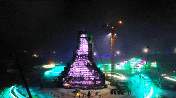 規(guī)模最大的冰景建筑“圣火之巔”完工,標(biāo)志著第二十三屆哈爾濱冰雪大世界開(kāi)園進(jìn)入了倒計(jì)時(shí)階段。園區(qū)內(nèi)其他冰雪景觀正在緊張施工中,一個(gè)流光溢彩、炫麗耀眼的冰雪樂(lè)園,即將呈現(xiàn)在世人面前。