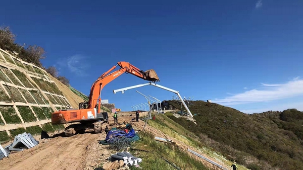 安裝完成的延慶賽區(qū)技術道路防護網(wǎng)。