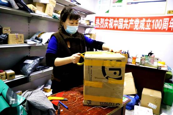 申通經(jīng)營(yíng)業(yè)主劉桂霞為客戶打包山特產(chǎn)品,發(fā)往全國(guó)各地。