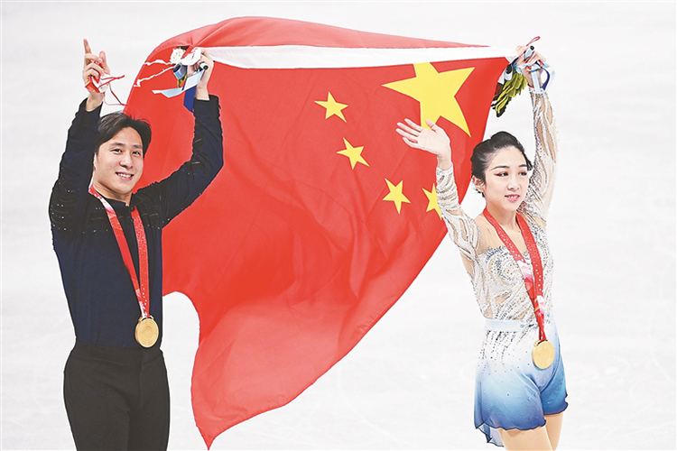 黑龍江日?qǐng)?bào)19日訊(黑龍江日?qǐng)?bào)全媒體特派記者郭俊峰)19日晚,北京冬奧會(huì)花樣滑冰雙人滑自由滑比賽結(jié)束后,隋文靜/韓聰以總成績(jī)239.88分排名第一,榮獲冠軍,彌補(bǔ)了4年前銀牌遺憾。