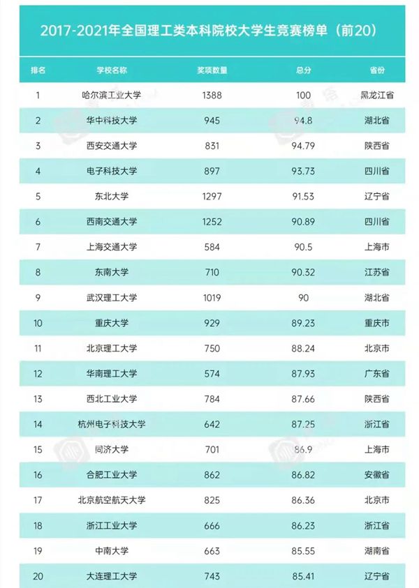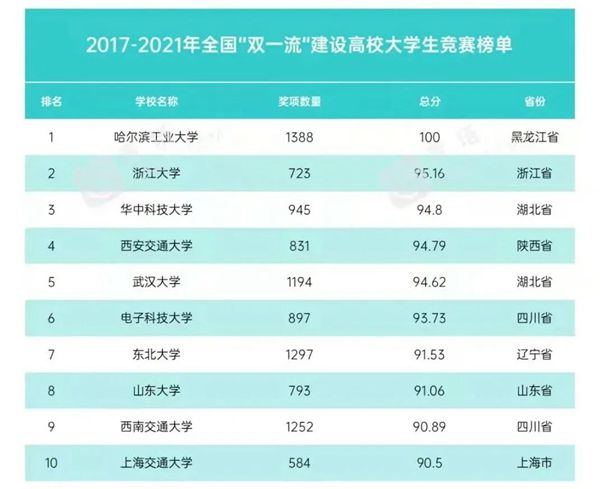 哈爾濱工業(yè)大學連續(xù)三年獲得全國普通高校大學生競賽榜單冠軍
