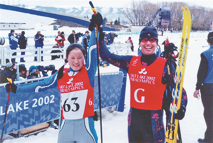 韓麗霞作為我國第一代盲人滑雪運(yùn)動(dòng)員參加2002年冬殘奧會(huì),取得盲人B3級(jí)10公里傳統(tǒng)滑雪第6名。