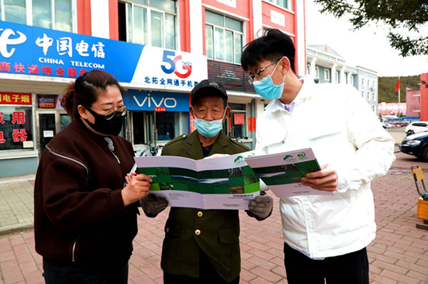 阿木爾林業(yè)局工作人員零距離向職工群眾解答森林認證概念、流程、目的等相關問題(王力 攝)