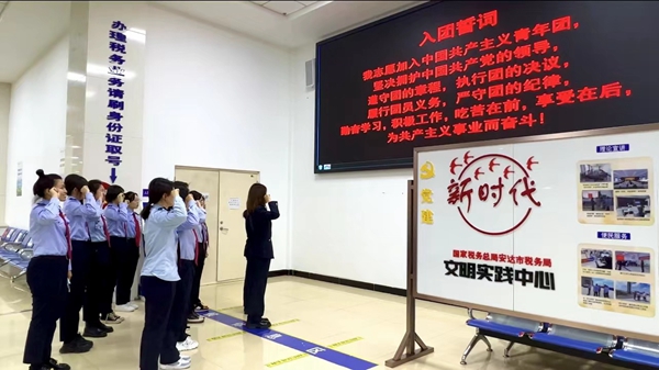 重溫入團(tuán)誓詞,匯聚青春力量。為進(jìn)一步引導(dǎo)廣大團(tuán)員青年厚植愛國、愛黨、愛稅收事業(yè)的深厚情感,進(jìn)一步增強(qiáng)團(tuán)支部的組織力量,安達(dá)市稅務(wù)局團(tuán)支部開展重溫入團(tuán)誓詞活動,在莊嚴(yán)的團(tuán)歌聲中,11名安達(dá)市稅務(wù)局奮戰(zhàn)在稅收一線的團(tuán)員干部在團(tuán)支部書記的帶領(lǐng)下,面向誓詞莊嚴(yán)宣誓。宣誓完畢后,安達(dá)稅務(wù)青年紛紛表示,將立足本職、埋頭苦干,用一流的業(yè)務(wù)能力為納稅人繳費(fèi)人帶來一流的納稅服務(wù)體驗,為安達(dá)稅收事業(yè)奉獻(xiàn)青春力量。