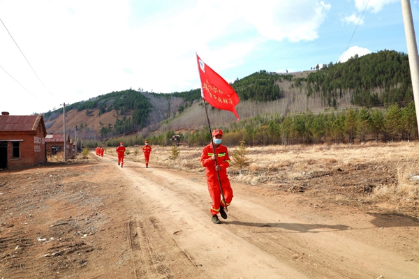 阿木爾林業(yè)局綠林林場專業(yè)撲火隊伍進(jìn)行輕裝快速行軍兩公里比賽(王力 攝)
