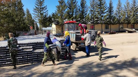 在各項(xiàng)條件具備后,苗圃搶抓時(shí)間進(jìn)行輕基質(zhì)杯生產(chǎn)工作和起苗作業(yè),職工們發(fā)揚(yáng)實(shí)干精神,積極投入到生產(chǎn)工作中來,每天生產(chǎn)輕基質(zhì)近1萬(wàn)杯,并已完成新播落葉松起苗工作。