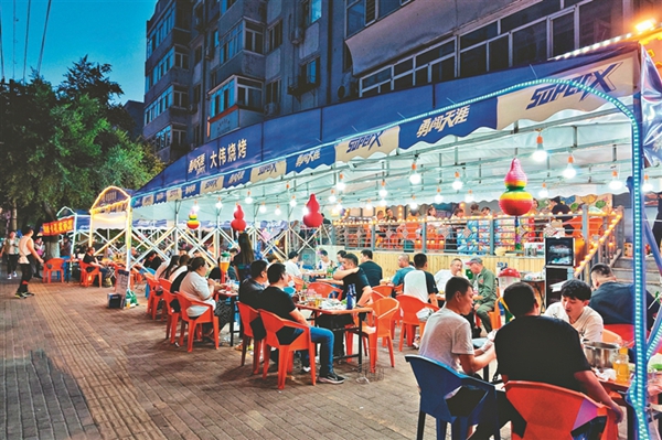 夜幕降臨,冰城街路的大排檔里,人們一邊吃著燒烤海鮮,一邊喝著啤酒,談天說地,不亦樂乎……仲夏六月,在大排檔允許外擺政策的推動(dòng)下,夏日“夜經(jīng)濟(jì)”越來越火熱,冰城濃濃的“煙火氣”回歸。大排檔既豐富了市民生活,冰城的快樂消費(fèi)也開始了。
