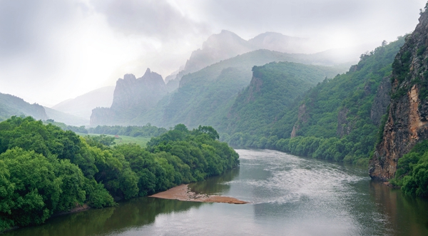 東寧洞庭風景區(qū)處于綏芬河的中游,是東寧知名的旅游景點之,洞庭湖周圍山峰崖懸壁陡,陡岸垂直落差100米,有“江南峽谷”之韻感。在群山懷抱的翡翠世界里,彎彎曲曲的綏芬河穿流在風景區(qū)之中,河水靜謐剔透顯得格外安靜。