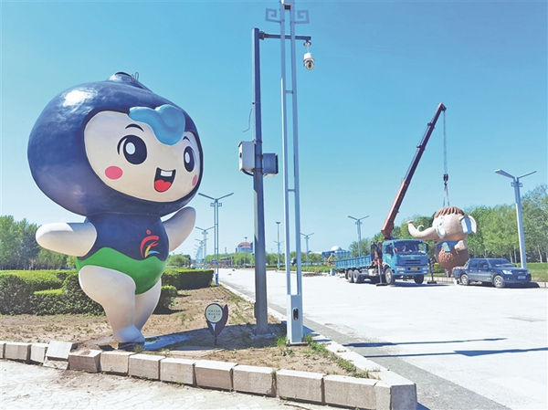 據(jù)中國電力建設(shè)市政集團有限公司現(xiàn)場技術(shù)總負責人劉銘介紹,為迎接省旅發(fā)大會召開,時代廣場改造期間專門定做、安裝了10個吉祥物做景觀小品,大的5.5米高,小的3.5米高。