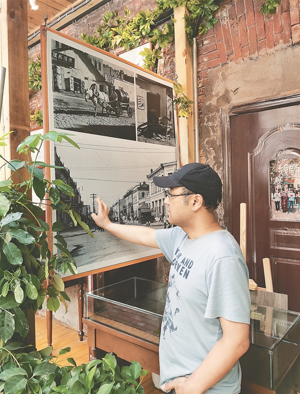 宋興文說,該樓一部分一直閑置,他投資租下該樓一部分進(jìn)行修復(fù),利用十余年來收藏的端街老建筑圖紙、文件、俄僑老家居用品、老照片等,辦起了這家私人公益博物館,2021年8月開始免費向游人開放,介紹端街歷史文化,實現(xiàn)“哈爾濱老建筑活化”,目前每天能接待游客百余人。