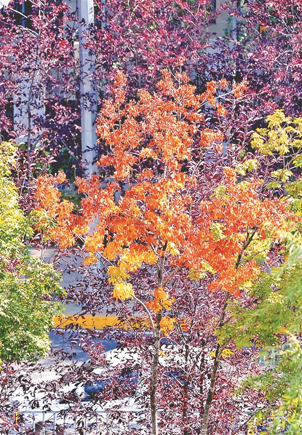 13日,哈爾濱市道里區(qū)景江東路附近的綠化帶里,一些樹(shù)葉開(kāi)始變色,紅的、黃的、綠的,構(gòu)成了一幅美麗的圖畫(huà),成為街頭一道風(fēng)景,吸引人們駐足觀看、拍照。哈爾濱市秋色漸顯,為整座城市增添了更多的魅力。