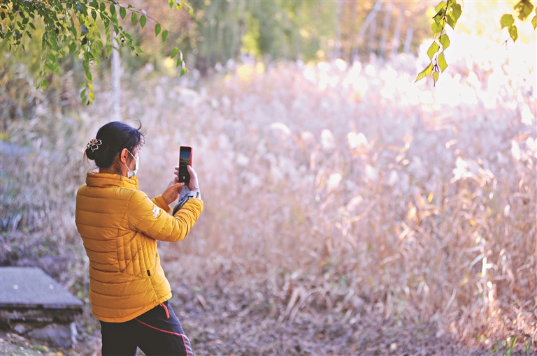 11日,哈爾濱市群力城市濕地公園內(nèi),大片的蘆花隨風(fēng)搖曳,從高處望去,黃綠的蘆葦上好像蓋了一層厚厚的白雪,美麗又壯觀,吸引許多市民前來觀看、拍照。