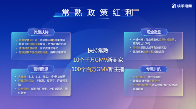 在流量扶持方面,新手常熟商家可享受“青云計(jì)劃”每天8億流量扶持,還有短視頻流量扶持、直播間流量保量、全站資源位曝光、短視頻掛車疊加獎(jiǎng)勵(lì)等;在營(yíng)銷資源方面,快手電商打造每月高頻的營(yíng)銷場(chǎng)景,包括大促、節(jié)日、行業(yè)品類活動(dòng)、寵粉節(jié)等,并為常熟商家提供活動(dòng)補(bǔ)貼,激活品牌動(dòng)銷;此外還有最高價(jià)值100萬的商業(yè)化對(duì)投政策、周任務(wù)躍遷達(dá)成平臺(tái)加碼獎(jiǎng)勵(lì)等現(xiàn)金激勵(lì),以及1V1專屬小二全方位指導(dǎo)等專屬護(hù)航。
