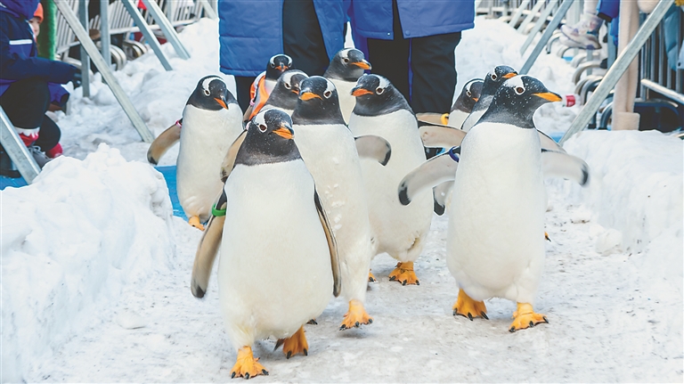 “我們就是專程為‘淘學(xué)企鵝’而來(lái),能在哈爾濱看到全國(guó)僅有的企鵝冰雪巡游,真的不虛此行。”早在1年前,上海游客孟蕓就通過(guò)短視頻看到它們背著小書(shū)包打卡黑龍江美景的身影,成為妥妥的“鵝粉”。她說(shuō),為了能在前排近距離觀看,她更是早早就來(lái)到極地廣場(chǎng)等候。哈爾濱極地公園營(yíng)銷(xiāo)部經(jīng)理崔美艷說(shuō),“淘學(xué)企鵝冰雪巡游”自啟動(dòng)以來(lái),每日引萬(wàn)人打卡,成為今冬的爆款網(wǎng)紅活動(dòng),吸引全國(guó)游客來(lái)到哈爾濱看企鵝打卡拍攝,全網(wǎng)曝光量更是在25天的時(shí)間里突破了8.5億。