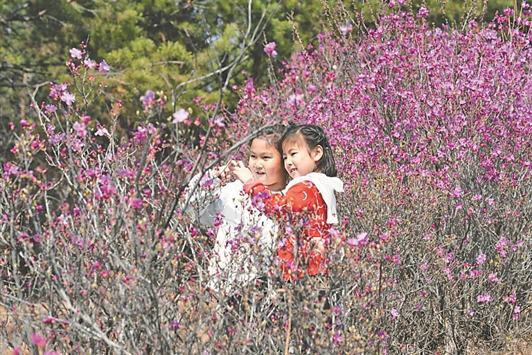 紫云嶺的興安杜鵑陸續(xù)綻放,吸引了大量游客來此賞花游玩。