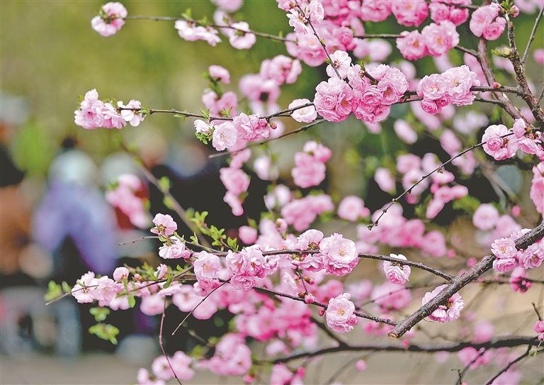 近期,哈爾濱市街頭、廣場(chǎng)、公園里種植的榆葉梅陸續(xù)開(kāi)花,有粉色的,有紅色的,一團(tuán)團(tuán)一簇簇,綻放的花朵吸引人們駐足觀賞、拍照。