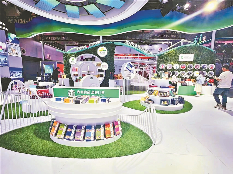 在黑龍江展館內(nèi),設(shè)置了省級(jí)區(qū)域公用品牌黑土優(yōu)品、九珍十八品展區(qū)及龍江森工集團(tuán)森林食品展區(qū),琳瑯滿目的綠色食品彰顯了龍江的地大物博以及做好祖國(guó)糧食安全“壓艙石”、打造踐行大食物觀先行地的底氣與實(shí)力。
