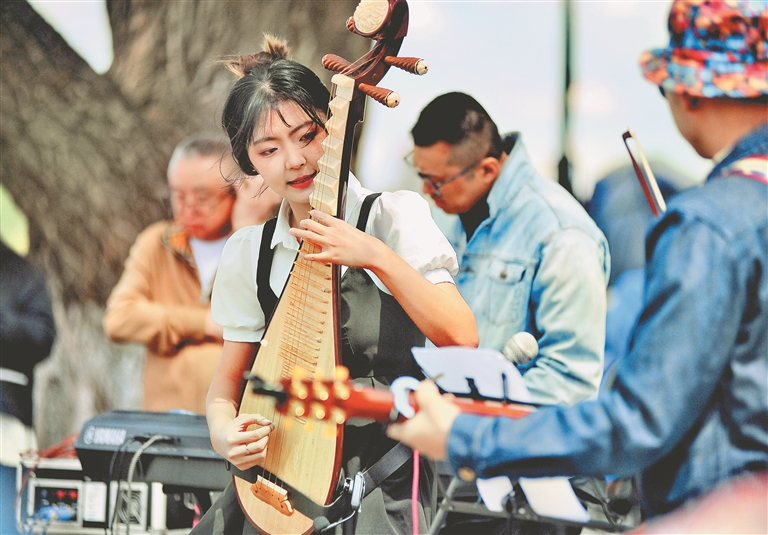 進(jìn)入夏季,每天都有眾多音樂愛好者來到江邊演出。他們自備音箱,自彈自唱,為“音樂之城”哈爾濱“代言”,成為江邊一道獨(dú)特的風(fēng)景。